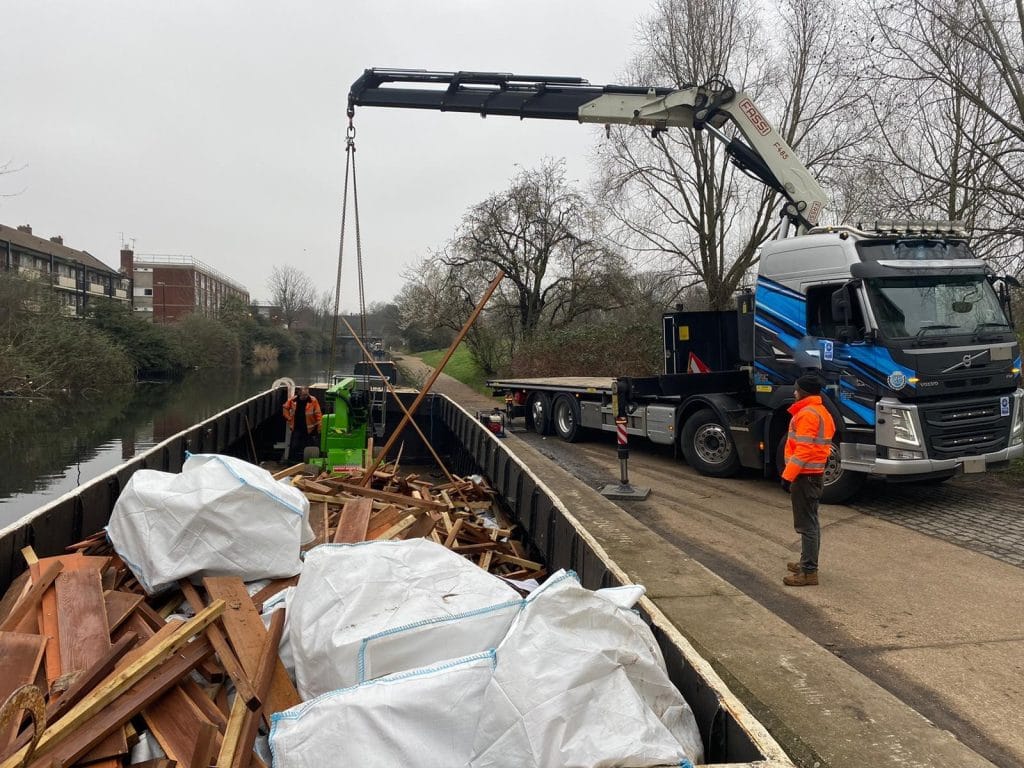Long gone are the days of transporting goods on canals, but this job floated our boat when this cherrypicker needed to be placed by hiab onto a barge in order to aid workman on the waterway. Grab #lorries previously emptied some of the cladding to make way for our delivery.