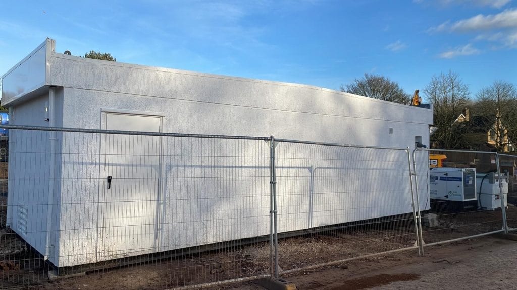 This is a wide load 32′ x 12′ cabin being repositioned on site using a 85 tonne metre Hiab.