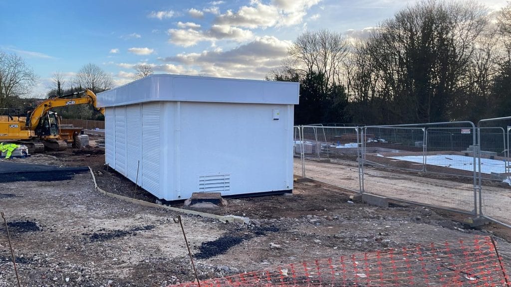 This is a wide load 32′ x 12′ cabin being repositioned on site using a 85 tonne metre Hiab.