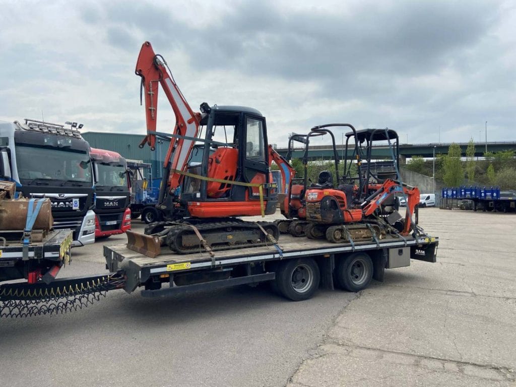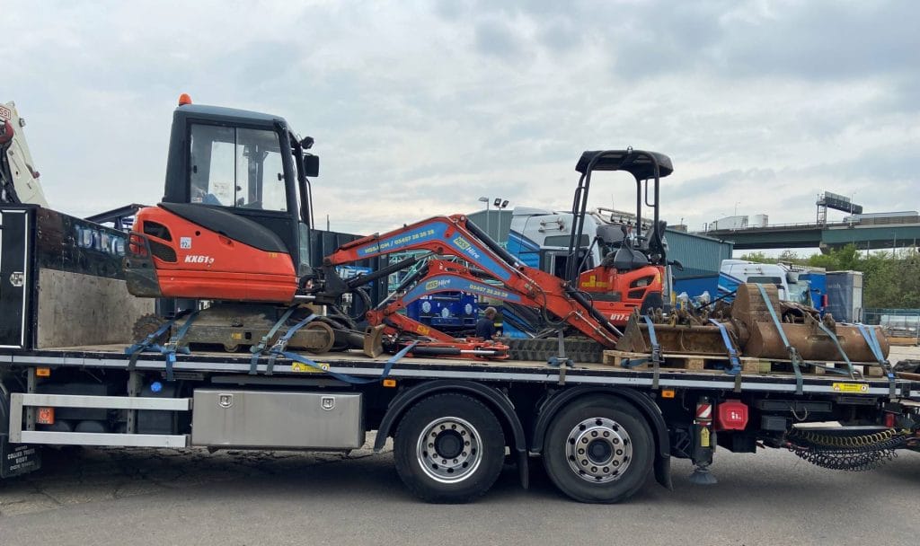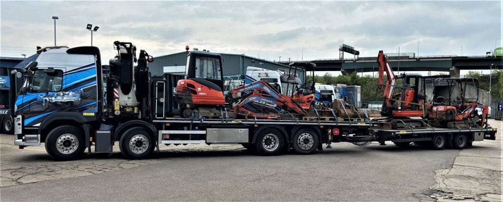 Our customer got themselves out of a hole when they used us to transport these diggers on a Wagon & Drag Hiab lorry. Looks like the delivery point might be digging themselves a big hole too.