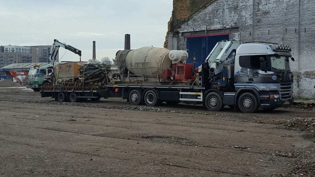 Gerry Webb Transport Services Ltd used a wagon and drag trailer to transport this concrete pump to a site in London.